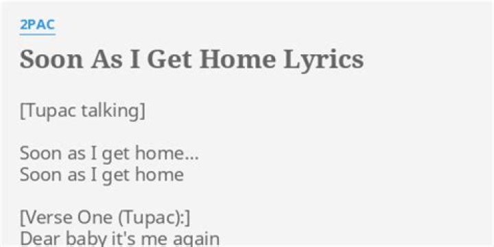 Get lyrics of 2pac as soon as i get home song you love. List contains 2pac as soon as i get home song lyrics of older one songs and hot new releases. Get known every word of your favorite song or start your own karaoke party tonight :-).