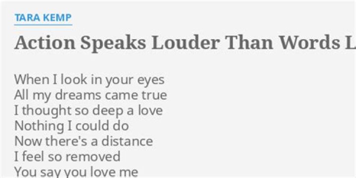 Lyrics to Action Speaks Louder Than Words Lyricsmania staff is working hard for you to add Action Speaks Louder Than Words lyrics as soon as they'll be released by Ganksta Nip, check back soon! In case you have the lyrics to Action Speaks Louder Than Words and want to send them to us, fill out the following form:Tom Grennan - Something In The Water Lyrics