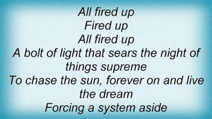 Get lyrics of All fired up song you love. List contains All fired up song lyrics of older one songs and hot new releases. Get known every word of your favorite song or start your own karaoke party tonight :-).