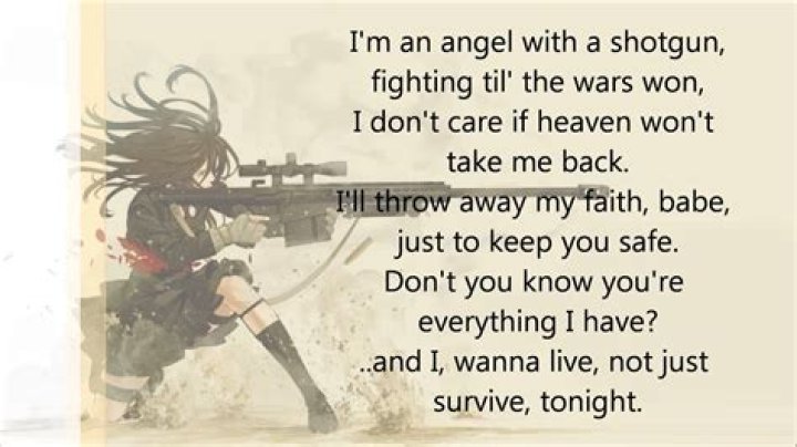I'm an angel with a shotgun fighting 'til the wars won I don't care if heaven won't take me back I'm an angel with a shotgun fighting 'til the wars won I don't care if heaven won't take me back I'll throw away my faith, babe, just to keep you safe Don't you know you're everything I have? And I want to live, not just survive tonightLyrics Search angel with a shotgun