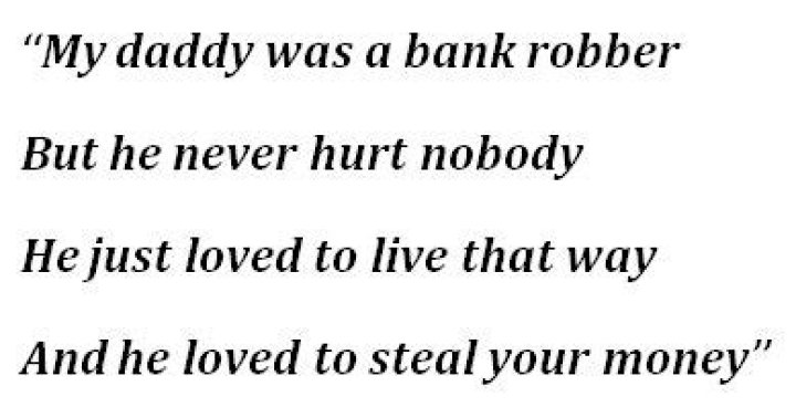 Daddy was a bankrobber But he never hurt nobody He just loved to live that way And he loved to steal your money Some is rich and some is po.PMC ALL-STARS - BANK ROBBER LYRICS