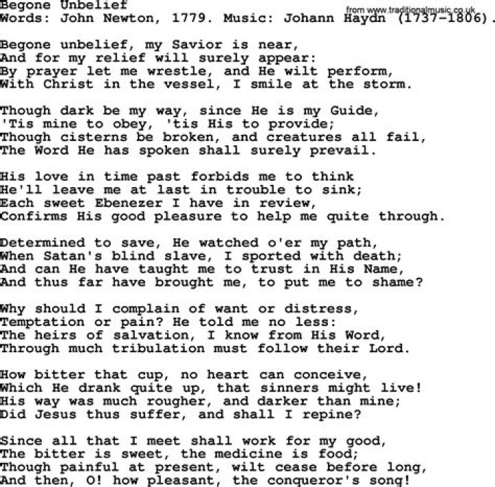 Get lyrics of Begone unbelief song you love. List contains Begone unbelief song lyrics of older one songs and hot new releases. Get known every word of your favorite song or start your own karaoke party tonight :-).