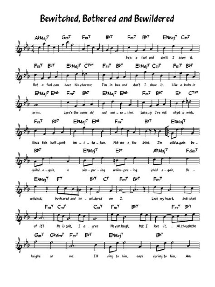 Get lyrics of Bewitched, bothered and bewildered sunday .. song you love. List contains Bewitched, bothered and bewildered sunday .. song lyrics of older one songs and hot new releases. Get known every word of your favorite song or start your own karaoke party tonight :-).