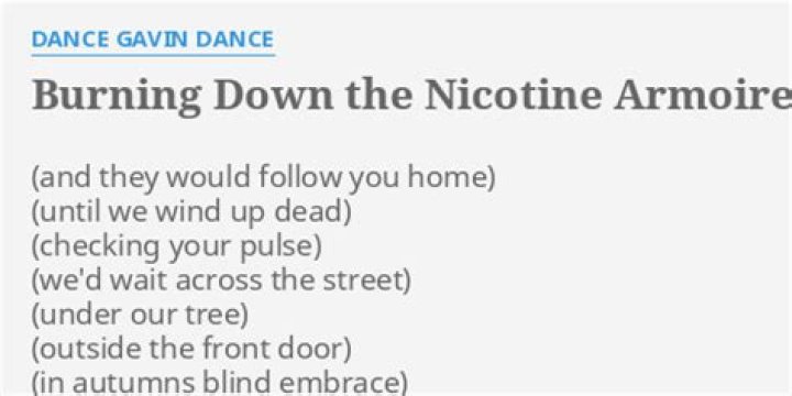 Lyrics to "Burning Down The Nicotine Armoire Pt. 2" song by DANCE GAVIN DANCE: Still grinding teeth, trying to follow you home I'll stop the world 'cause this ...DANCE GAVIN DANCE - ROCK SOLID LYRICS