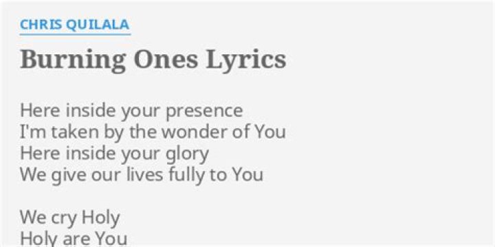Lyrics to 'Burning Ones' by Jesus Culture. ... Burning Ones Lyrics. from Awakening: Live from Chicago. Jesus Culture - lyrics Awakening: Live from Chicago ...Chris Quilala - Burning Ones lyrics