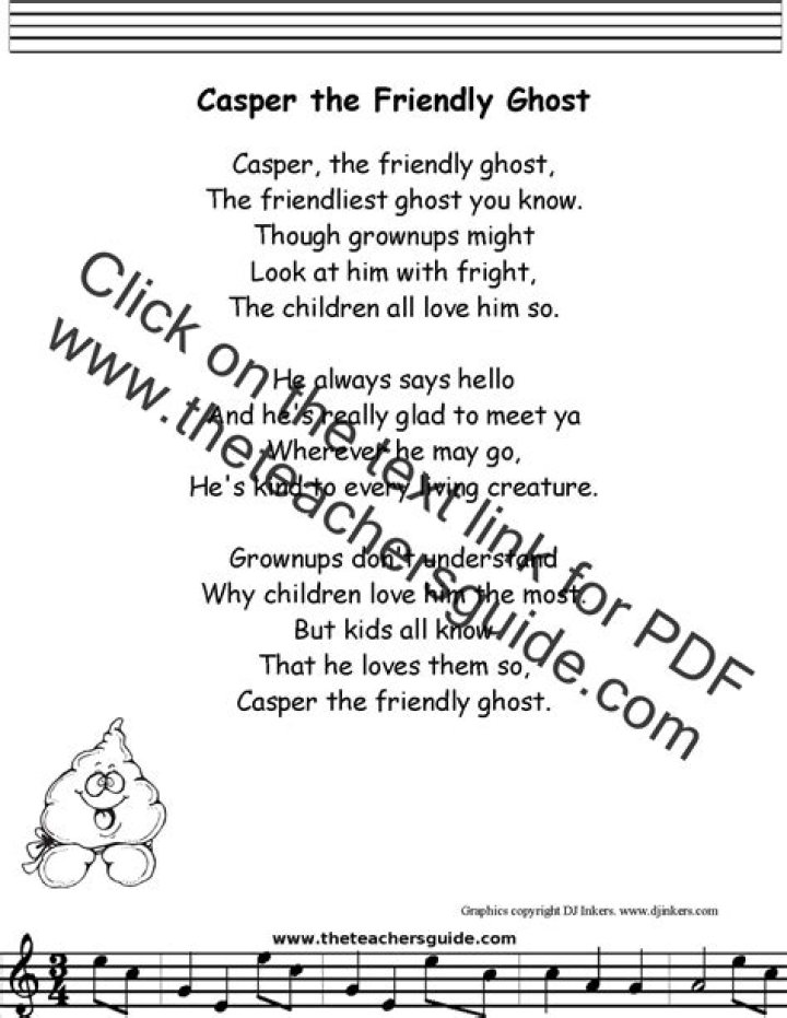 Get lyrics of Casper the friendly ghost song you love. List contains Casper the friendly ghost song lyrics of older one songs and hot new releases. Get known every word of your favorite song or start your own karaoke party tonight :-).