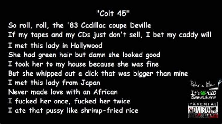 Hey, help me sing it, homeboy.) Colt 45 and two Zig Zags, baby that's all we need. We can go to the park after dark, smoke that tumbleweed. And as the marijuana burns we can take our turns, singing them dirty rap songs Stop and hit the bong like Cheech and Chong, sell tapes from here to Hong Kong. So roll, roll, roll my joint.Cooper Alan & RVSHVD - Colt 45 (Country Remix) Lyrics