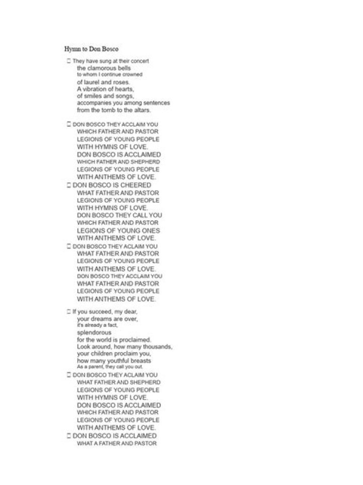 Don bosco hymn. let us sing of our father the glory lyrics