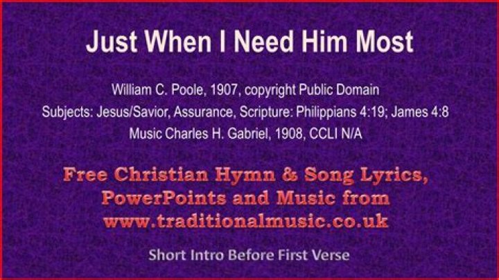 Get lyrics of Earnest pugh just when i need him most song you love. List contains Earnest pugh just when i need him most song lyrics of older one songs and hot new releases. Get known every word of your favorite song or start your own karaoke party tonight :-).