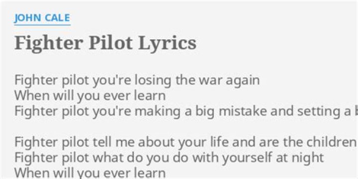 Lyrics to 'Fighter Pilot' by John Cale. Fighter pilot you're losing the war again / When will you ever learn / Fighter pilot you're making a big mistake and.