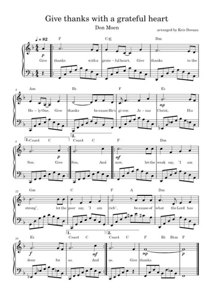 Give thanks with a grateful heart Give thanks to the Holy One Give thanks because He's given Jesus Christ, His Son And now let the weak say, I am strong Let the poor say, I am rich Because of what the Lord has done for us And now let the weak say, I am strong Let the poor say, I am rich Because of what the Lord has done for us Give thanksLyrics Search give thanks