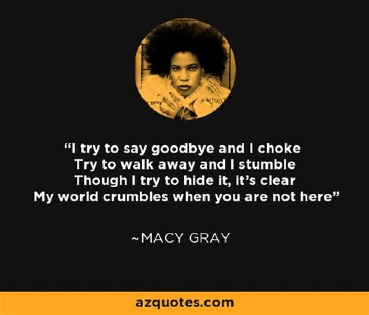 i believe that fate has brought us here and we should be together, babe but we're not i play it off but i'm dreaming of you and i'll keep my cool but i'm fiending i try to say goodbye and i choke i try to walk away and i stumble though i try to hide it, it's clear my world crumbles when you are not here goodbye and i choke i try to walk away and …MACY GRAY - I TRY - YAHOO LIVE SETS LYRICS