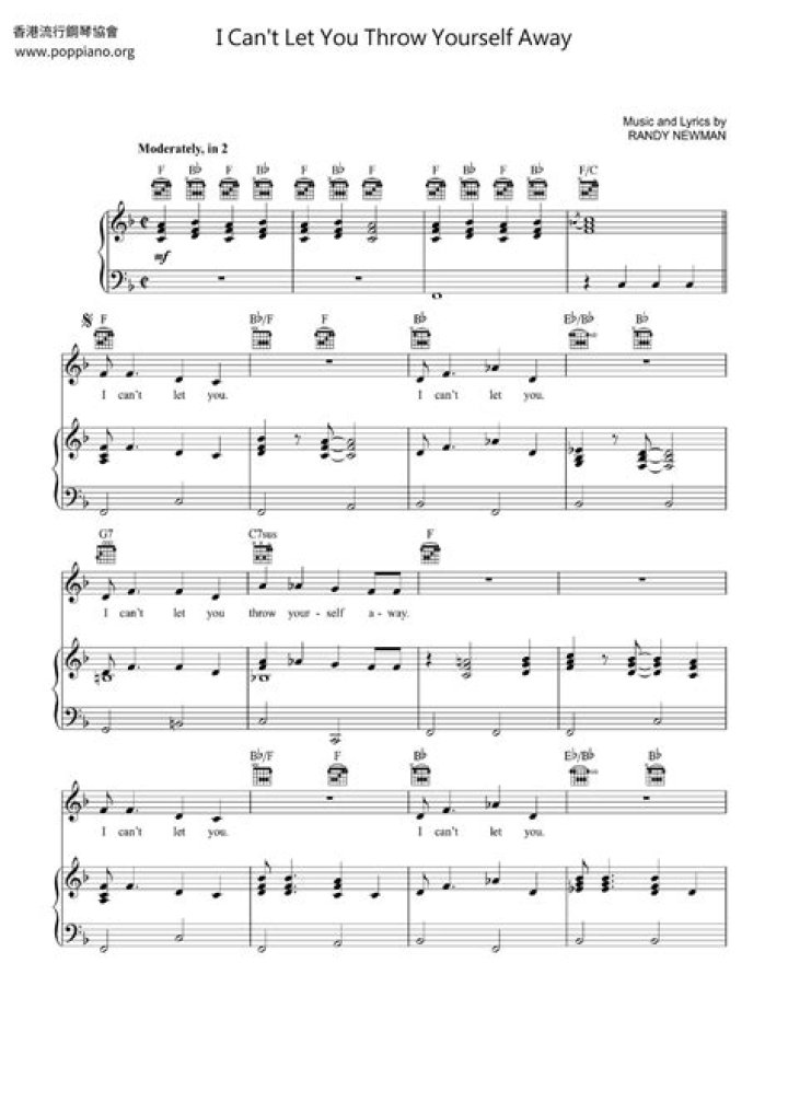 I CANT LET YOU THROW YOURSELF AWAY CHORDS by Randy Newman