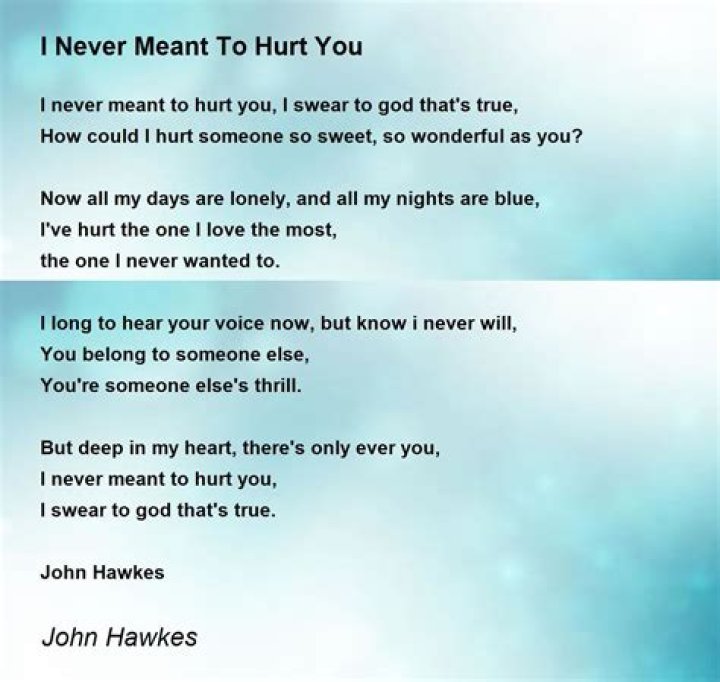 Get lyrics of I never meant to hurt you, i never meant to say those words to you song you love. List contains I never meant to hurt you, i never meant to say those words to you song lyrics of older one songs and hot new releases. Get known every word of your favorite song or start your own karaoke party tonight :-).