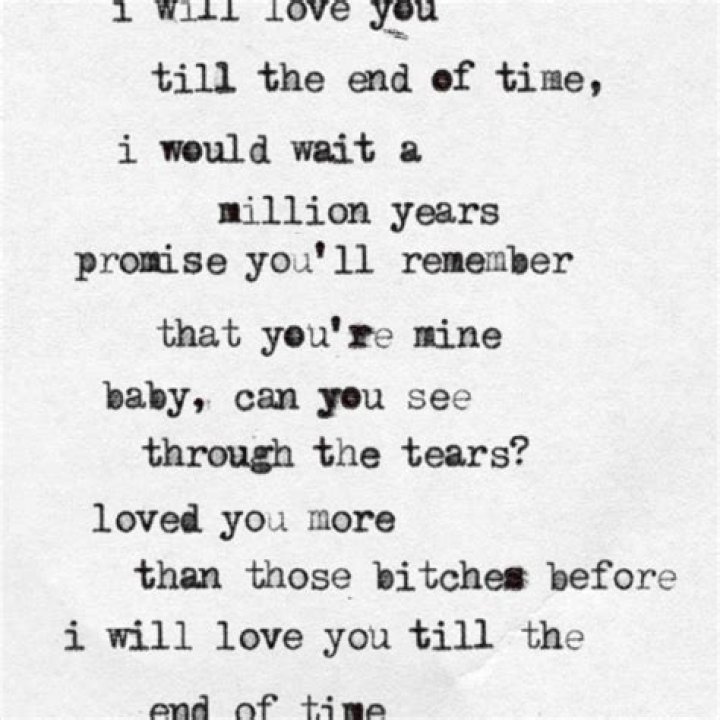 Get lyrics of I will love you till the end of time cara mia song you love. List contains I will love you till the end of time cara mia song lyrics of older one songs and hot new releases. Get known every word of your favorite song or start your own karaoke party tonight :-).