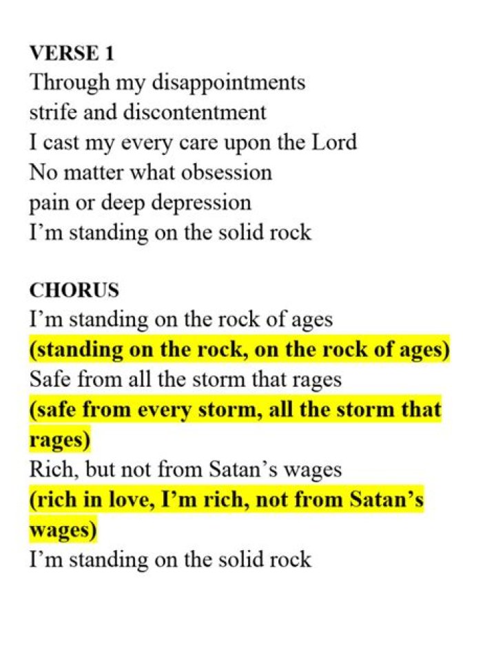 JESUS IS THE ROCK Jesus is the rock on which I stand Jesus is the rock on which I stand J... Type song title, artist or lyrics ... When you're standing on the solid rock And you know the power that you have Satan you can′t prevail Satan you can′t prevail (D/C) So praise the Lord Everybody praise the Lord Everybody praise the Lord (D/C) I ...STEVE AOKI - LIGHT YEARS (FEAT. RIVERS CUOMO) LYRICS