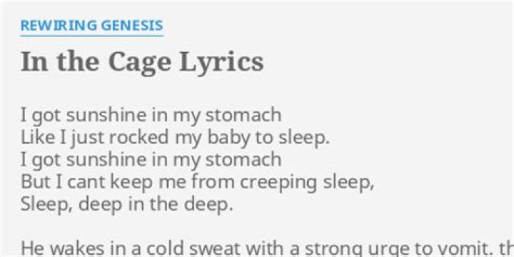 Lyrics to "In The Cage" song by GENESIS: There's sunshine in my stomach Like I just rocked my baby to sleep. There's sunshine in my stomach A...
