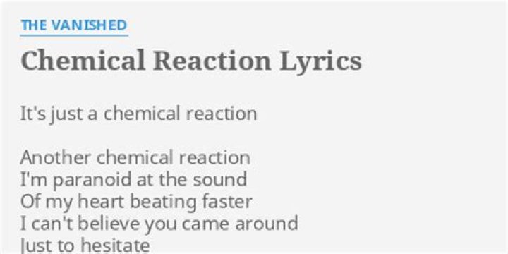 Get lyrics of It’s a chemical reaction song you love. List contains It’s a chemical reaction song lyrics of older one songs and hot new releases. Get known every word of your favorite song or start your own karaoke party tonight :-).