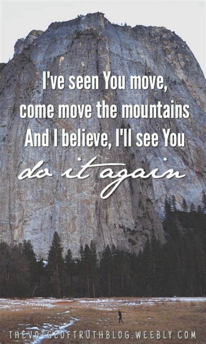 Get lyrics of Ive seen you move mountains by elevation worship song you love. List contains Ive seen you move mountains by elevation worship song lyrics of older one songs and hot new releases. Get known every word of your favorite song or start your own karaoke party tonight :-).