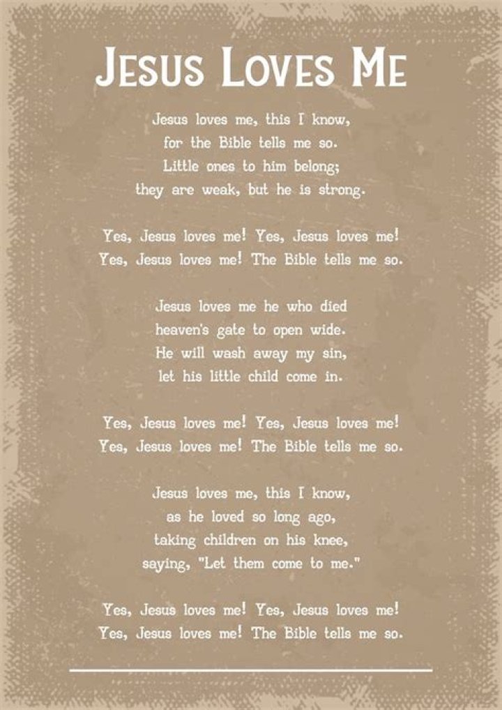 Hip Hop/Rap. Pop. Christian. Dance. Latin. ... Jesus loves me, this I know For the Bible tells me so Little ones to Him belong They are weak, but He is strong Yes, Jesus loves me Yes, Jesus loves me Yes, Jesus loves me For the Bible tells me so Jesus Loves Me Lyrics.CHRIS TOMLIN - JESUS LOVES ME LYRICS