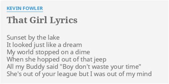Lyrics to "That Girl" song by KEVIN FOWLER: Sunset by the lake It looked just like a dream My world stopped on a dime When she hopped out of tha...KEVIN FOWLER LYRICS - Love Song