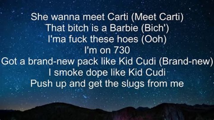 Lyrics for Kid Cudi Only Carti by YungGen. They tryna be cray' (Mm, yeah) They tryna be cray' (Mm, yeah) She wanna meet Carti (Huh, Carti) That bitch is a Barbie (Yeah) I'ma fuck these hoes (Ooh) I'm on 730 Got a brand new pack like Kid Cudi (Brand new) I smoke dope like Kid Cudi Push up and get the slugs from me I'm with all the shits (Brr) She wanna meet Carti (Huh, Carti) That bitch is a ...Playboi Carti - Kids Lyrics