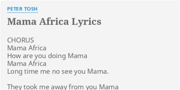 Mama Africa How are you doing Mama Mama Africa Long time me no see you Mama They took me away from you Mama Long before I was born They took me away from you Mama Long before I came on in Chorus There's so many things about you Wondering where you are They try their best to hide you Mama But I search and I find you Chorus In you there's so much ...Peter Tosh - Mama Africa Lyrics