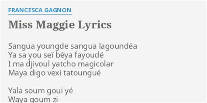 Lyrics to Miss Maggie Login now to have your sent lyrics counted and climb our user rankings! Lyricsmania staff is working hard for you to add Miss Maggie lyrics  ...Benjamin Biolay - Miss Maggie lyrics