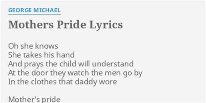 George Michael - Mothers Pride Lyrics. Oh she knows, she takes his hand And prays the child will understand At the door they watch the men go by In the ...MICHAEL GEORGE - MOTHERS PRIDE LYRICS