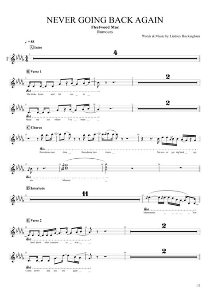 NEVER GOING BACK AGAIN TAB by Fleetwood Mac
