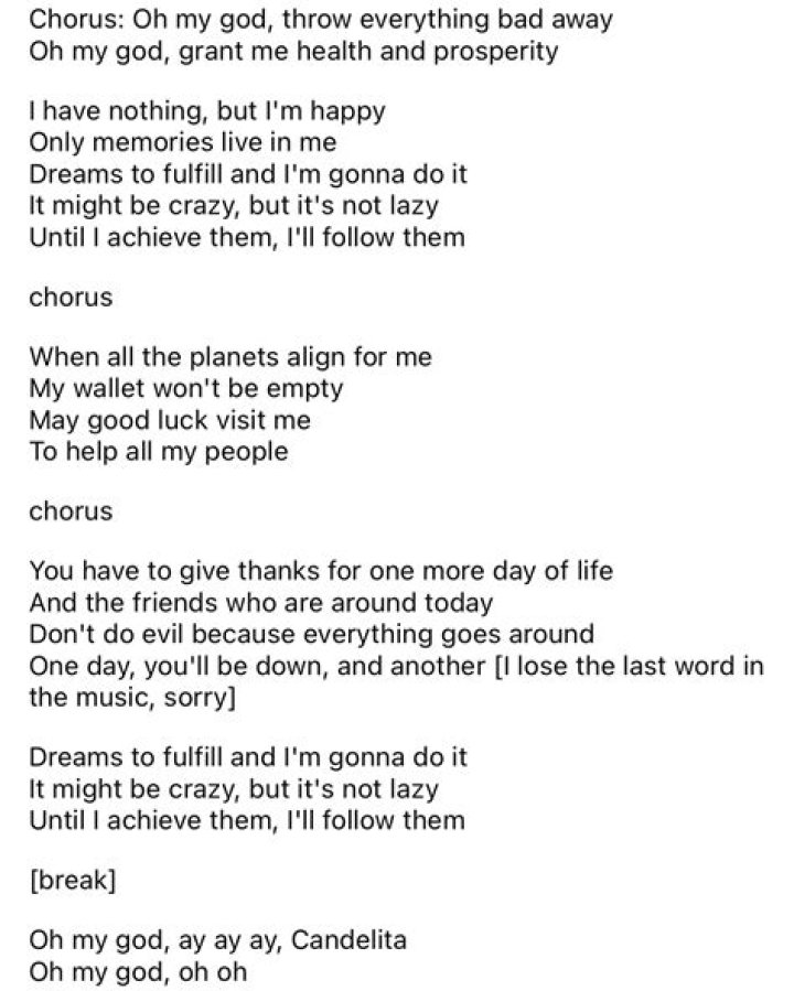 Search for lyrics and artists in our massive database of song ... sin Saw you there and I though oh my god Look at that face you look like ... Blank Space (Voice Memo ...Usher - Oh My Gosh Lyrics