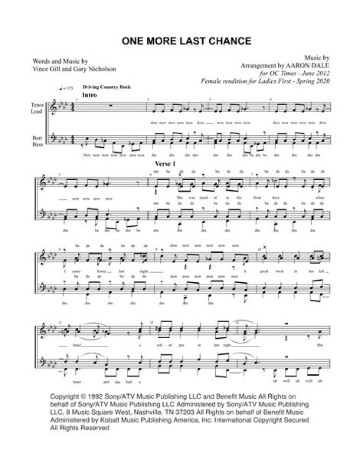 Lyrics for One More Last Chance by Vince Gill. She was standing at the front door When I came home last night Good Book in her left hand. And a rolling pin in her right She said you′ve come home for the last time With the whiskey on your breath If you don't listen to my preaching, boy I′m gonna have to beat you half to death Give me just a ...One More Last Chance lyrics by Vince Gill - original song full text ...