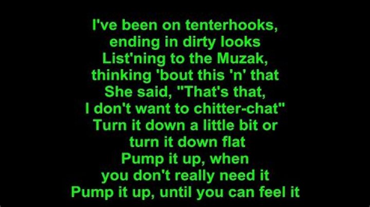 Lyrics to "Pump It Up" song by ELVIS COSTELLO: I've been on tenterhooks ending in dirty looks, list'ning to the Muzak, thinking 'bout this 'n' that...