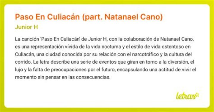 Yo soy un fanático de la música regional mexicana y me encanta explorar diferentes estilos y artistas dentro de este género. Recientemente, descubrí la canción «Paso En Culiacán» de Natanael Cano & Junior H, y me llamó la atención su contenido y su vibrante sonido. Quiero compartir el significado detrás de esta canción y cómo me ha impactado.