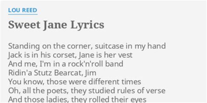 Lou Reed - Sweet Jane Lyrics. Standing on the corner Suitcase is in my hand Jack is in his corset, and Jane is in her vest I'm in a rock 'n' roll band Ridin' in a ...