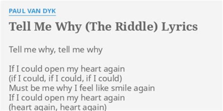 Get lyrics of Tell me why (the riddle) song you love. List contains Tell me why (the riddle) song lyrics of older one songs and hot new releases. Get known every word of your favorite song or start your own karaoke party tonight :-).