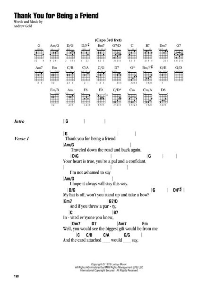 Get lyrics of Thank you for being a friend song you love. List contains Thank you for being a friend song lyrics of older one songs and hot new releases. Get known every word of your favorite song or start your own karaoke party tonight :-).