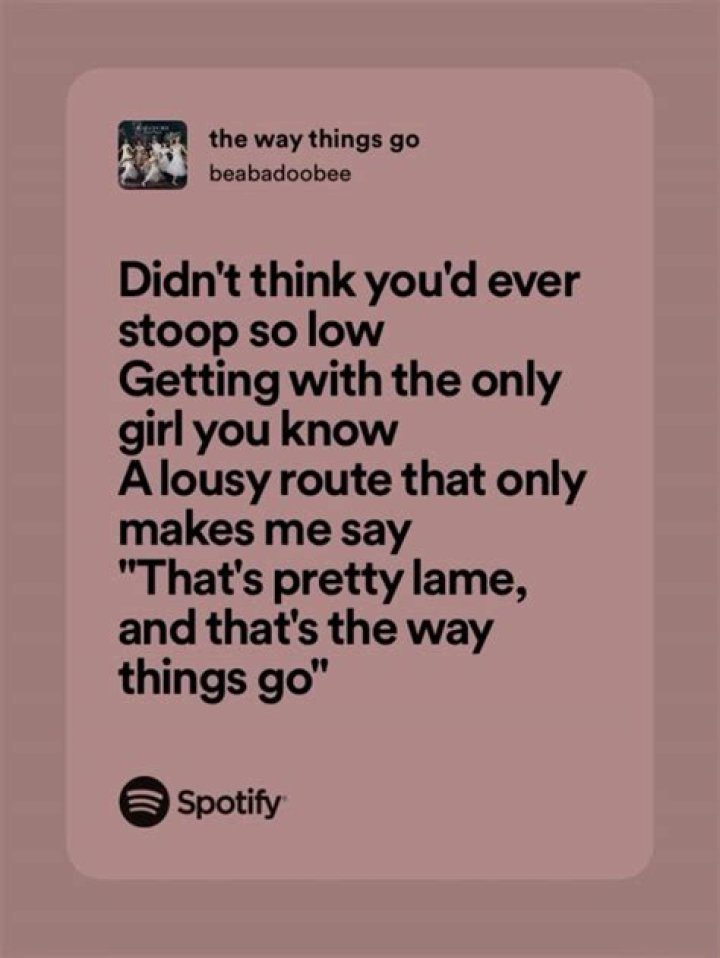 Get lyrics of That’s pretty lame but that’s just the way things go song you love. List contains That’s pretty lame but that’s just the way things go song lyrics of older one songs and hot new releases. Get known every word of your favorite song or start your own karaoke party tonight :-).