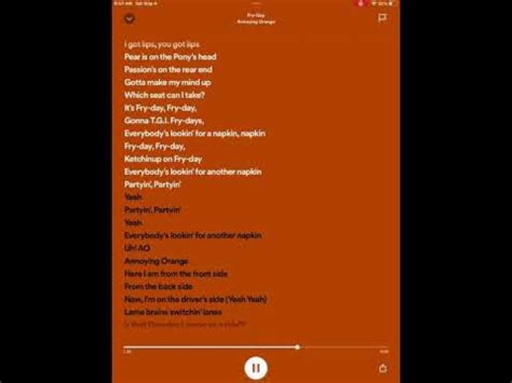 Get lyrics of The annoying orange fry day song you love. List contains The annoying orange fry day song lyrics of older one songs and hot new releases. Get known every word of your favorite song or start your own karaoke party tonight :-).