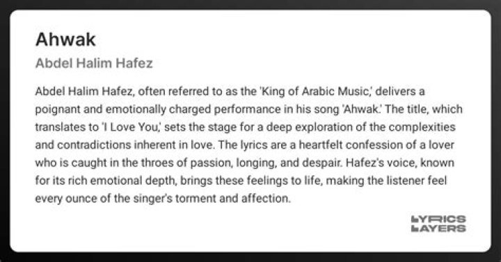While Ahwak is primarily known as a love song, some listeners interpret it as a metaphor for a deeper, spiritual connection between individuals. The lyrics can be seen as a representation of a profound bond that goes beyond romantic love, encompassing a more profound and soulful connection.