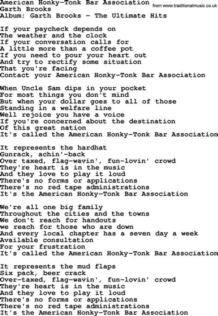 The Meaning Behind The Song: American Honky-Tonk Bar Association by Garth Brooks