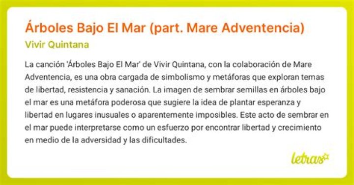 As a music journalist, I am constantly on the lookout for new and captivating songs. One such song that has caught my attention recently is “Árboles Bajo El Mar” by Vivir Quintana and Mare Adventencia. This powerful and emotive track has a deep meaning behind its lyrics that resonates with listeners on a profound level.