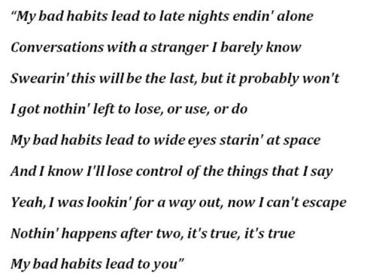 Personally, this song resonates with me on a deeply relatable level. We all have our own set of bad habits, whether it’s overindulging in unhealthy foods, procrastinating, or succumbing to negative thought patterns. “Bad Habits” serves as a reminder of the internal struggles we face in trying to overcome these destructive behaviors.
