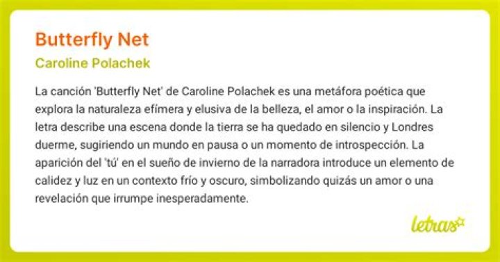 Caroline Polachek’s song “Butterfly Net” is a mesmerizing piece that showcases her unique blend of pop, singer-songwriter, and alternative pop genres. Released on February 14, 2023, as part of her album “Desire, I Want to Turn Into You,” this song captivates listeners with its dreamlike lyrics and ethereal melodies. As we delve into the meaning behind the song, let us explore the profound emotions it evokes and how it resonates with personal experiences.