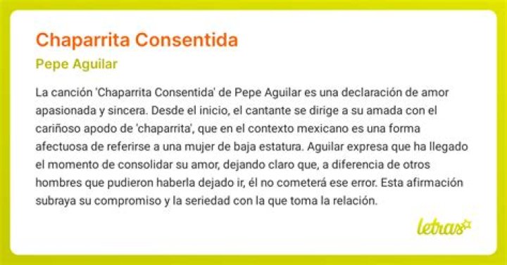 The lyrics of “Chaparrita Consentida” speak of a deep love for a petite and beloved woman. The term “Chaparrita” translates to “shorty” in English, and “Consentida” means “spoiled” or “favorite.” Together, these words create an endearing term of endearment for the woman referenced in the song. Aguilar expresses his love and admiration for this woman, despite not receiving love in return.