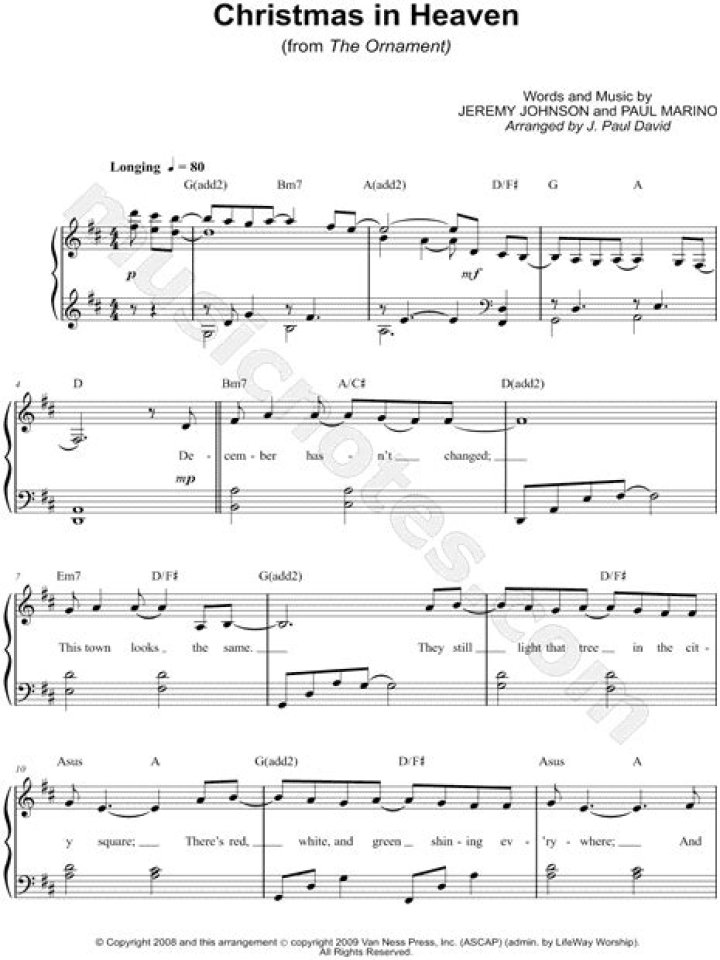 Some notable lyrics include: “Christmas in Heaven, what a wonderful sight, Golden streets, candles glowing bright, There’s no more tears, no more pain, ‘Cause Jesus came to wipe them all away.”