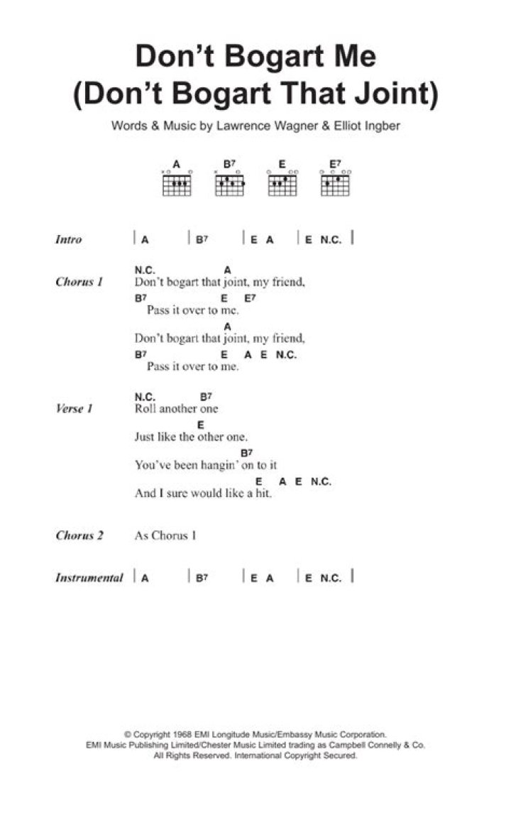 The song’s title, “Don’t Bogart Me,” is an expression derived from the name of the famous actor Humphrey Bogart, who was often portrayed smoking cigarettes with a sophisticated and self-absorbed demeanor. In this context, “Bogarting” refers to someone selfishly monopolizing a joint or any smoking material without passing it along to others. The Fraternity of Man lyrically encourages individuals to be more considerate and inclusive, urging them not to be like Humphrey Bogart and instead share the joy, love, and unity that can arise from communal smoking experiences. This simple yet impactful message resonated strongly within the counterculture movement of the 1960s, where freedom and the rejection of societal norms were celebrated.