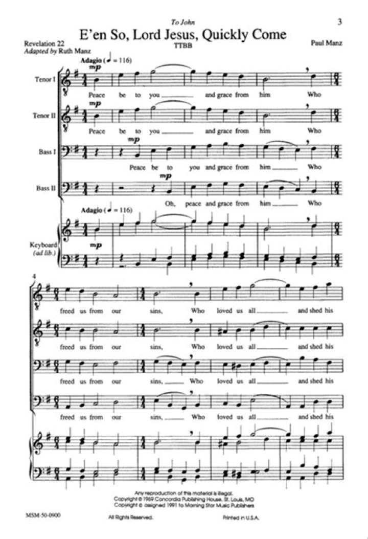 The song “E’en So; Lord Jesus; Quickly Come” was composed by Paul Manz, an American organist and composer, in the 1950s. It was first published in 1953 and has since become a cherished choral piece, particularly during the Advent season.
