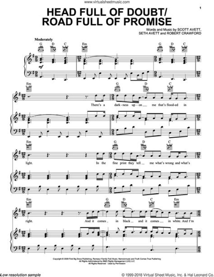 “Head Full of Doubt/Road Full of Promise” is a captivating song written and performed by the talented American folk-rock band, The Avett Brothers. Released in 2009 as part of their album “I and Love and You,” this song not only displays the musical prowess of the band but also holds a deep and profound meaning within its poetic lyrics.