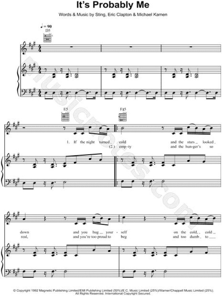 “It’s Probably Me” was written by Sting, Michael Kamen, and Eric Clapton. The song was performed by Sting and Clapton, with backup from a group of talented musicians, including David Sanborn, Steve Gadd, and Manu Katché.